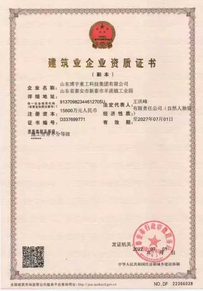 山東博宇重工科技集團秉承以“質量為重,服務至誠,低碳環保,持續改進”的質量方針,以“人員為核心,技術為龍頭,不斷創新,打造共贏”的經營理念,讓客戶滿意、省心、省力,幫助客戶實現夢想,超越期望!